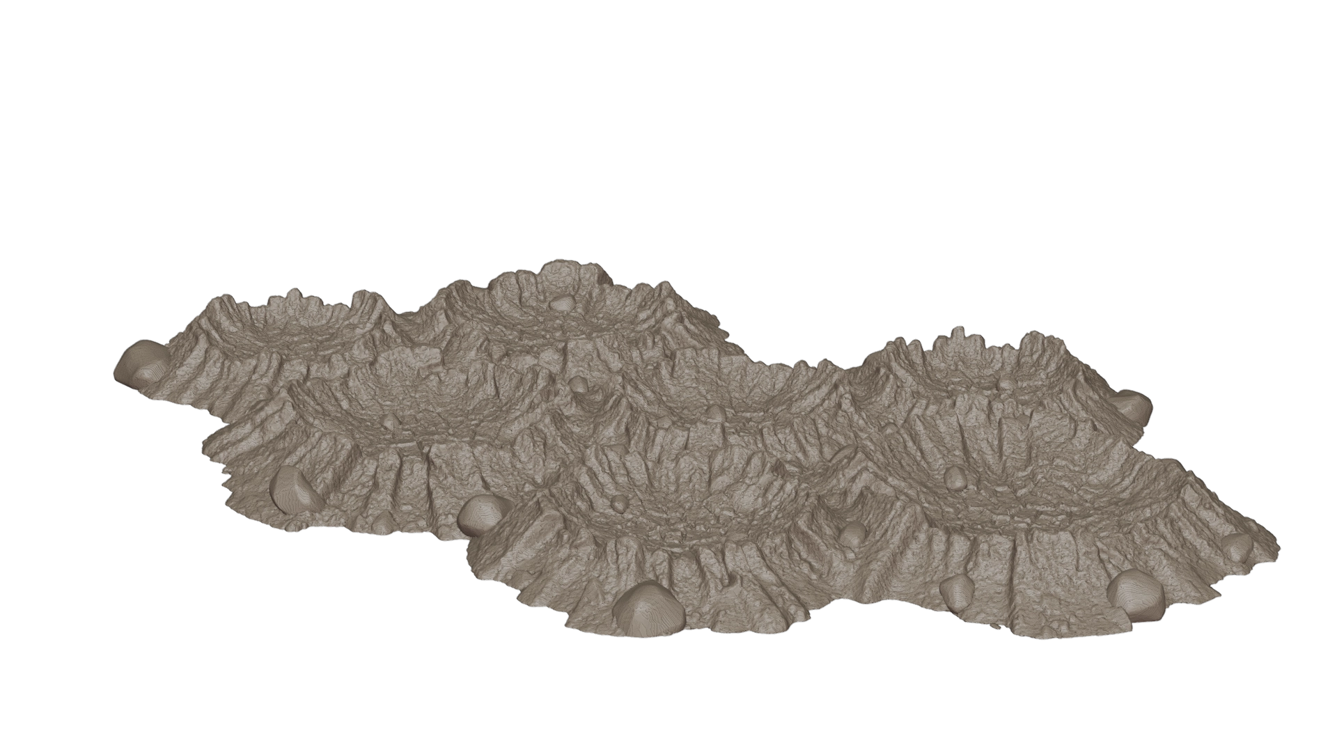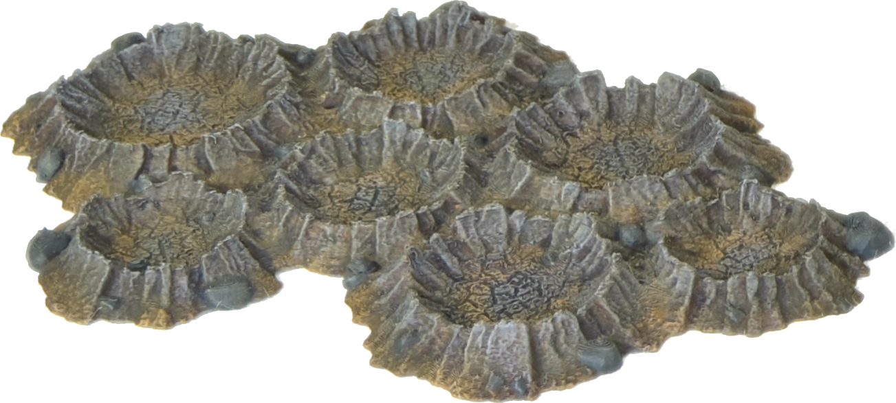 A single-piece crater model, supplied unpainted. Measures 151.6 mm × 157.3 mm × 10.5 mm.